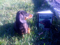 Beemer,Ms. M's dachshund friend, was into his book on things to know about other wiener dogs. Beemer is about Ms. M's size but they are just friends! In fact, Beemer is very talented with the clippers and a brush and likes to do some grooming for Ms. M when he comes over. What a great friend to have!